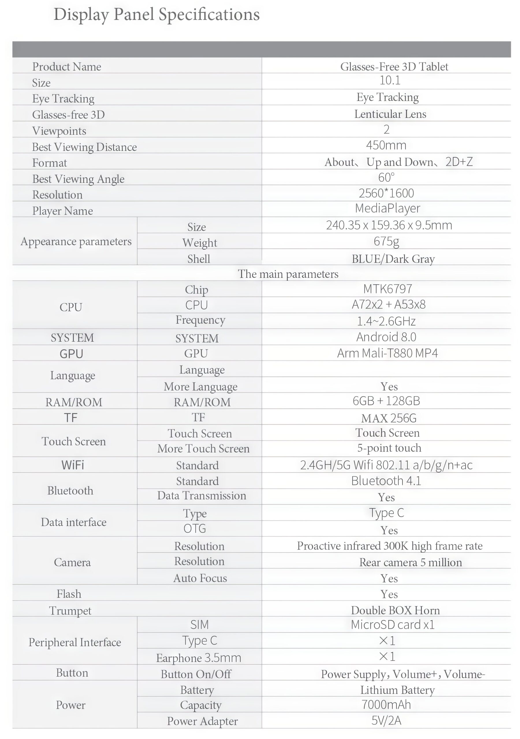10.1″ Glasses-free 3D Tablet With Eye Tracking